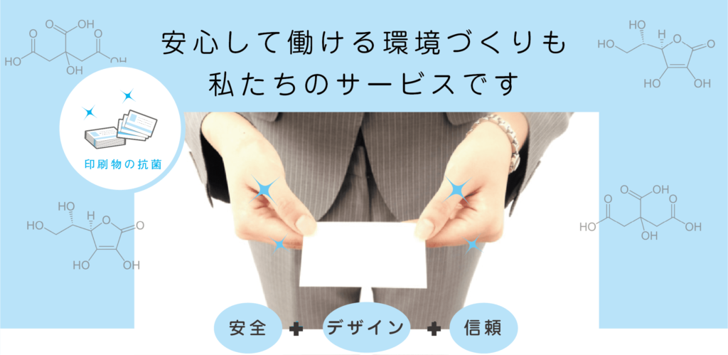 名刺やチラシに使用する抗菌・抗ウイルス加工のプラチナナノコーティングは別サイトで紹介をしております。