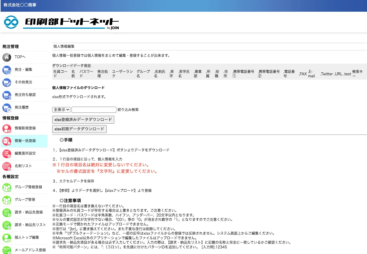 Excelデータを使って、社員情報を一括で登録・変更可能。大量データも正確かつスピーディーに反映できます。
